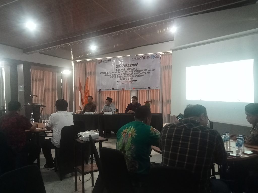 Kediri (Adakitanews.id) – Badan Pengawas Pemilu (Bawaslu) Kabupaten Kediri menggelar sosialisasi Undang-undang nomor 7 tahun 2017 tentang Pemilihan Umum dalam rangka Persiapan Pengawasan Masa Kampanye pada Pemilu 2024, Jumat (20/10).