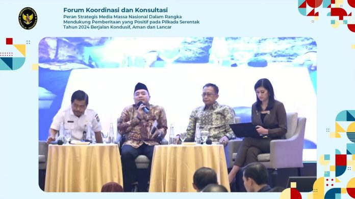 Hadi Tjahjanto, Menko Polhukam dalam sambutannya mengatakan bahwa pihaknya telah melaksanakan safari memastikan persiapan Pilkada serentak tahun 2024 di berbagai wilayah di Indonesia dengan hatrapan pelaksanaan Pilkada serentak ini berjalan dengan lancar, perlu adanya sinergi dengan media masa agar informasi yang disampaikan kepada masyarakat terhindar dari hoax.
