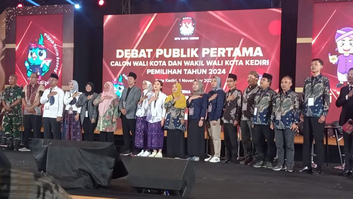 Kediri, (adakitanews.id) – Komisi Pemilihan Umum (KPU) Kota Kediri menggelar Debat Publik pertama Pasangan Calon Wali Kota Kediri dan Wakil Walikota Kediri Tahun 2024, dengan menghadirkan kedua pasangan calon masing- masing nomor urut 1 Vinanda Prameswati dan KH Qowimuddin (Gus Qowim), nomor urut 2 pasangan Ferry Silviana Feronica dan Regina Nadya Suwono di Hall Insumo Kediri Convention Center (IKCC), Jumat malam (1/11/2024).