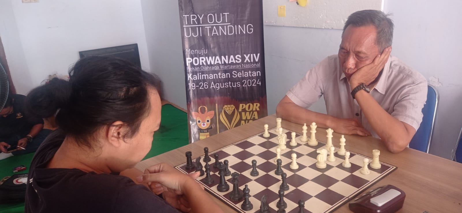 Dua Atlit Catur Siwo PWI Kediri Raya Latih Tanding Bersama Jurnalis Aji Kediri