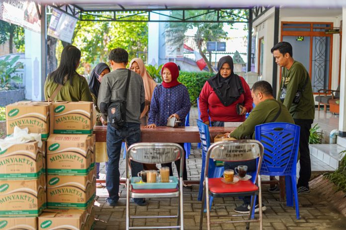 “Pembeli harus ber-KTP Kota Kediri agar pengendalian inflasi di Kota Kediri bisa tercapai. Pembelian dibatasi tiap 1 orang mendapat jatah 2 pak beras premium dan 2 botol Minyak Kita,” jelasnya.