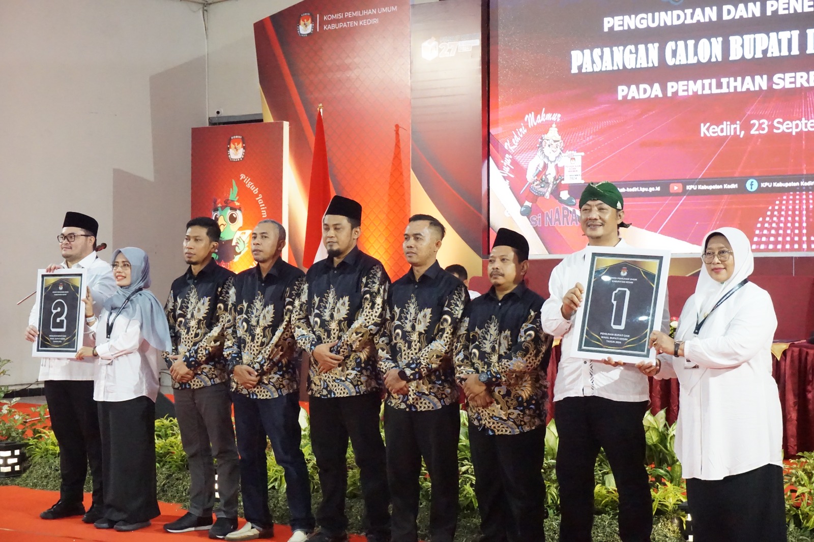 “Kami mendapatkan nomor satu itu merupakan sinyal yang baik, dimana nomor satu ditandai bersatu dengan bersatu in sya Allah kita akan memenangkan kontestasi ini mari satukan langkah, satukan niat, satukan tekad dalam perubahan mewujudkan Kabupaten Kediri yang kita cintai menjadi Kabupaten Kediri yang tangguh yang unggul dan bahkan mejadi yang hebat,” ungkapnya.