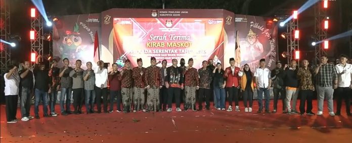Kediri, ( adakitanews.id ) – Setelah di tahapan sebelumnya menetapkan pasangan calon dan pengundian nomer urut, kali ini KPU Kabupaten Kediri melakukan serah terima Kirab Maskot Pilkada Serentak Tahun 2024, Selasa (24/9/2024)