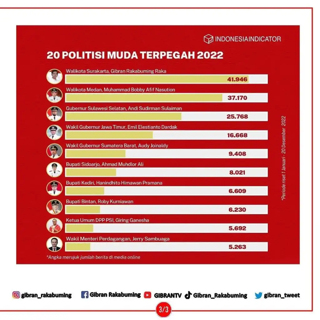 Mas Dhito, sapaan akrab Bupati Kediri ini masuk di peringkat nomor 7 deretan dari 20 nama politisi muda.