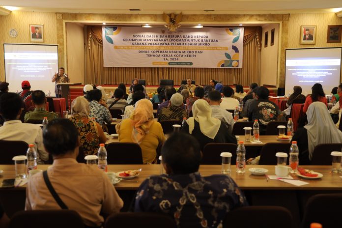 Kediri, ( adakitanews.id ) – Sebagai bentuk tanggung jawab penerimaan belanja hibah kepada Kelompok Masyarakat (Pokmas) Kota Kediri, Dinas Koperasi dan UMTK (Dinkop UMTK) Kota Kediri menggelar Sosialisasi Proses Pencairan dan Pertanggungjawaban (SPJ) Pokmas Kota Kediri untuk Bantuan Sarana dan Prasarana Pelaku Usaha Mikro, Jumat (14/6). Pertemuan yang berlangsung di salah satu hotel di Kota Kediri tersebut dihadiri sebanyak 120 Pokmas dari tiga kecamatan yang ada di Kota Kediri. Dalam sambutannya, Bambang Priyambodo, Kepala Dinkop UMTK Kota Kediri mengutarakan, bantuan tersebut diberikan kepada Pokmas guna memberikan manfaat bagi pelaku usaha mikro dalam mengembangkan usahanya, baik secara kuantitas dan kualitas pasar, maupun peningkatan pendapatan ekonomi.