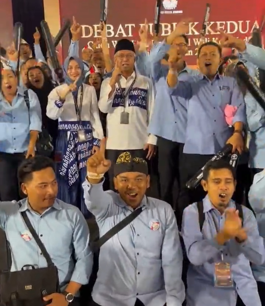 Outfit of The Day (OOTD) mereka sesuai dengan tema debat malam ini yakni, “Pembangunan Manusia Berbasis Kearifan Budaya Lokal, Pemberdayaan Ekonomi Kreatif dan Pemerintahan Daerah yang Bersih Menuju Indonesia Emas 2045”. Baik mbak Vinanda maupun Gus Qowim kompak memakai busana putih dengan aksen batik tulis biru aksara Jawa MAPAN, produk kreatif pembatik lokal.