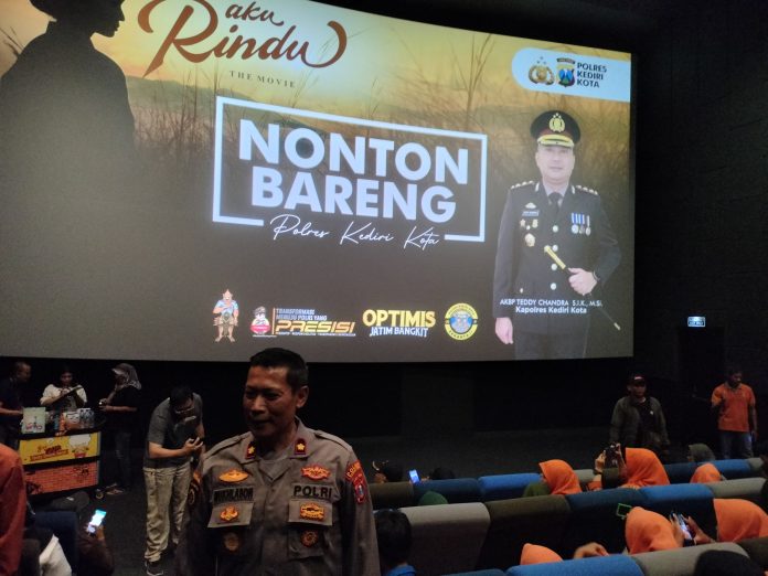 Kediri (Adakitanews.id)– Kepolisian Resort wilayah kota Kediri menggelar Nobar alias Nonton Bareng dengan mengajak seluruh awak Media Kediri Raya, anak sekolah dan beberapa kedinasan yang ada di wilayah kota Kediri. Pemutaran film dengan judul “Aku Rindu” ini sudah tayang beberapa hari yang lalu hingga saat ini. Dimana film Aku Rindu ini mengkisahkan tentang sebuah kehidupan melibatkan anak tidak sekolah dikarenakan tuntutan ekonomi.