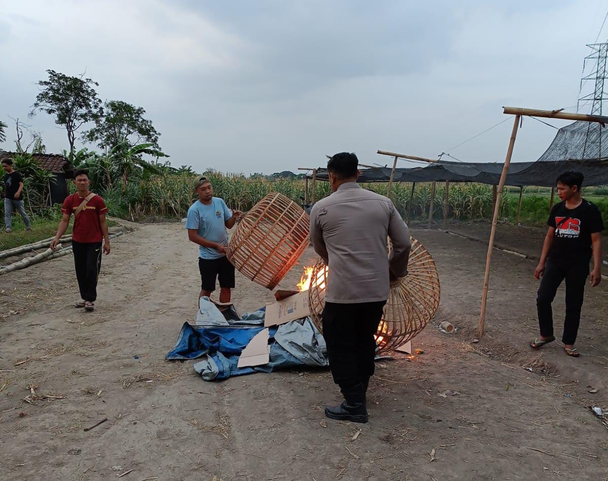 Saat Polisi tiba di TKP, para pelaku sabung ayam meninggalkan seluruh perlengkapan kegiatan tersebut, termasuk tenda dan alas karpet untuk sabung ayam. Selanjutnya Polisi membakar seluruh barang berupa tenda, terpal , kurungan ayam dan karpet sebagai alas arena sabung ayam tersebut.