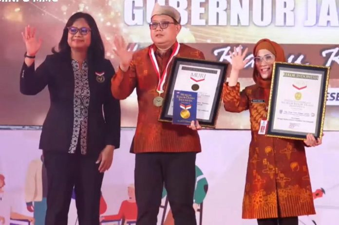 Penghargaan itu diserahkan oleh perwakilan MURI Ari Andriani kepada Sekretaris Daerah Provinsi Jawa Timur Adhy Karyono yang datang mewakili Gubernur Khofifah.