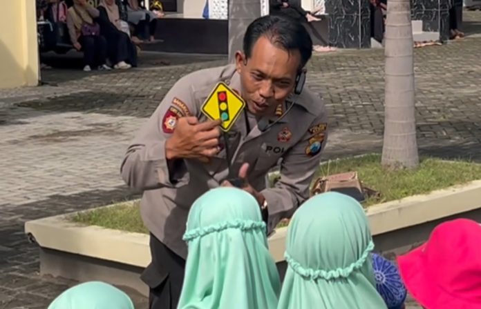 “Mereka dikenalkan dengan rambu rambu lalu lintas tersebut sebagai upaya untuk menanamkan tertib berlalu lintas sejak usia dini,” ungkap AKP. Bowo Wicaksono.