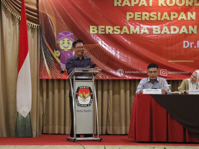 Kediri, ( adakitanews.id ) – Menjelang pemilihan kepala daerah serentak pada 27 November 2024, sebagai salah satu upaya mensukseskan Pilkada, KPU Kota Kediri mengadakan rapat koordinasi dan sosialisasi persiapan Pilkada tahun 2024 bersama Badan Ad Hoc dan Stakeholder, di salah satu hotel di Kota Kediri, Senin (1/7). KPU turut mengundang Pemerintah Kota Kediri sebagai narasumber untuk memberikan wejangan atau nasihat pada Badan adhoc dalam hal ini PPK dan PPS se-Kota Kediri.