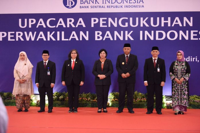 Kediri, (adakitanews.id) – Pj Wali Kota Kediri Zanariah mengikuti Upacara Pengukuhan Kepala Kantor Perwakilan Bank Indonesia Kediri, di Grand Panglima Resto, Senin (28/10). Kepala Kantor Perwakilan Bank Indonesia Kediri yang baru dikukuhkan yakni Yayat Cadarajat yang menggantikan pimpinan lama yakni Moch. Choirul Rofiq. Pengukuhan dilakukan oleh Deputi Gubernur Senior Bank Indonesia Destry Damayanti.