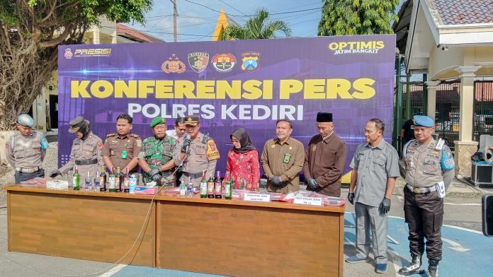 Sejumlah barang bukti yakni sebanyak 4 jurigen atau1.080 liter Arak Jawa dan 1.332 botol miras berbagai merek,dan 500 gram bubuk mercon 17 gulungan mercon di musnakan Polres Kediri dalam apel siaga menjelang hari raya idul fitri (lebaran) 1446 hijiriya