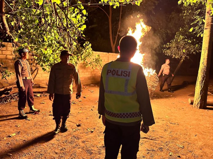 “Sarana tersebut kami bakar dan kami musnahkan sehingga dikemudian hari tidak bisa digunakan lagi” kata Kapolsek.