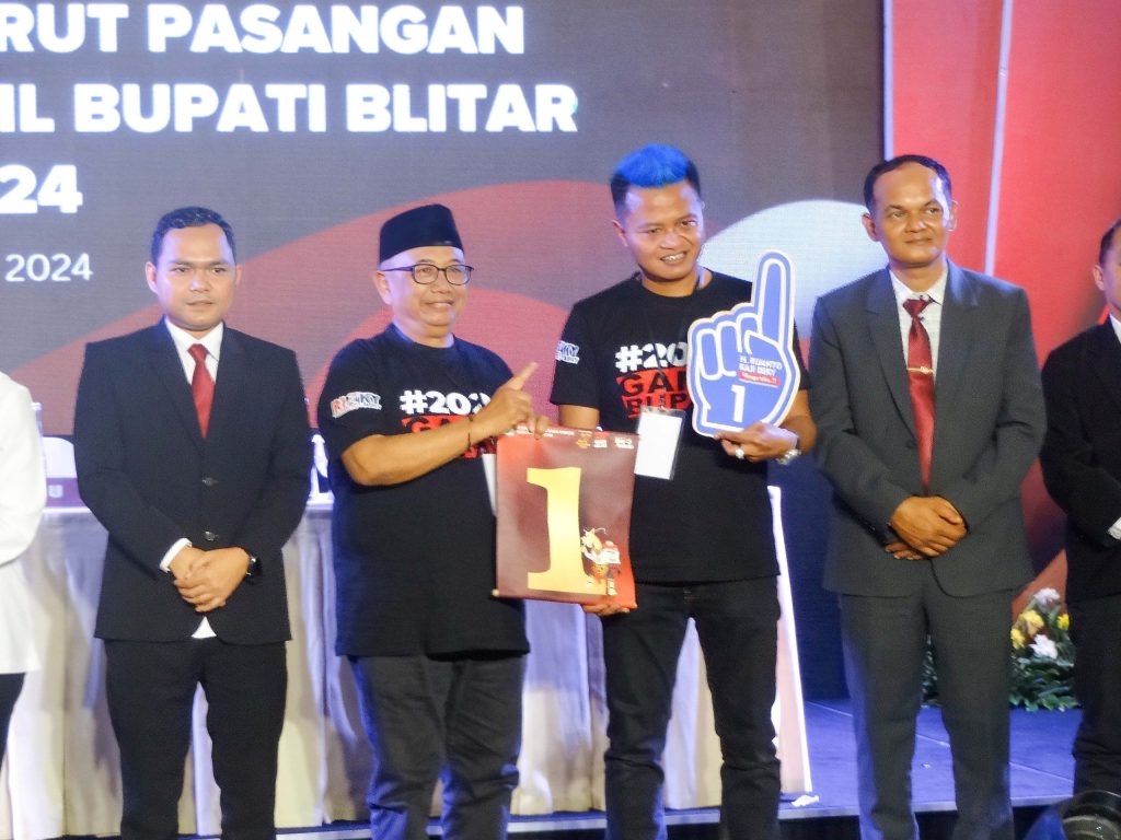 Blitar – Pasangan calon Bupati dan Wakil Bupati Blitar, Rijanto – Beky Herdihansah, mendapatkan nomor satu saat pengundian nomor urut yang diadakan Komisi Pemilihan Umum (KPU) Kabupaten Blitar. Pasangan ini diusung PDI Perjuangan, Nasdem dan PAN akan mengusung program pro rakyat sesuai dengan visinya, menjadikan Kabupaten Blitar yang berdaya dan berjaya.