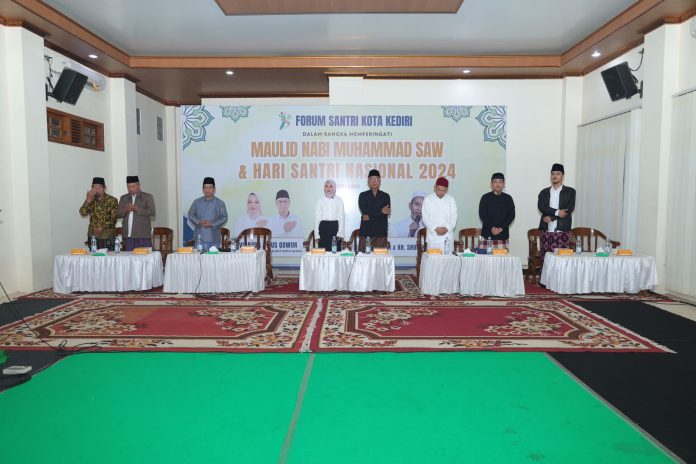 Kediri, (adakitanews.id) – Forum Komunikasi Santri Kota Kediri menggelar peringatan Maulid Nabi Muhammad SAW sekaligus Hari Santri Nasional (HSN) 2024 di komplek aula Pondok Pesantren Lirboyo, Kota Kediri. Acara tersebut dihadiri oleh sejumlah tokoh ulama dan para pengasuh pondok pesantren (ponpes) di Kota Kediri.