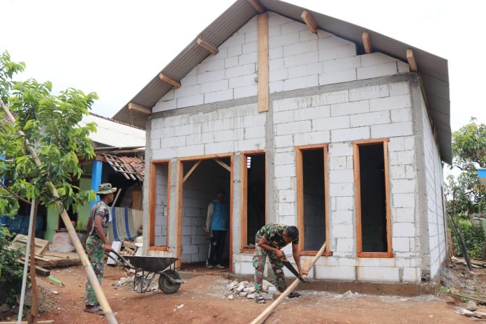 “Ini adalah rumah Bapak Rumah Rudi Santoso Dsn. Sekar Putih Rt. 2 Rw. 9 Ds. Pagung, salah satu warga yang rumahnya menjadi sasaran fisik RTLH di TMMD 122 dari 20 sasaran rumah yang direnovasi, pembangunan rumah layak huni yang dilakukan Satgas TMMD diperkirakan sudah mencapai 80 persen.