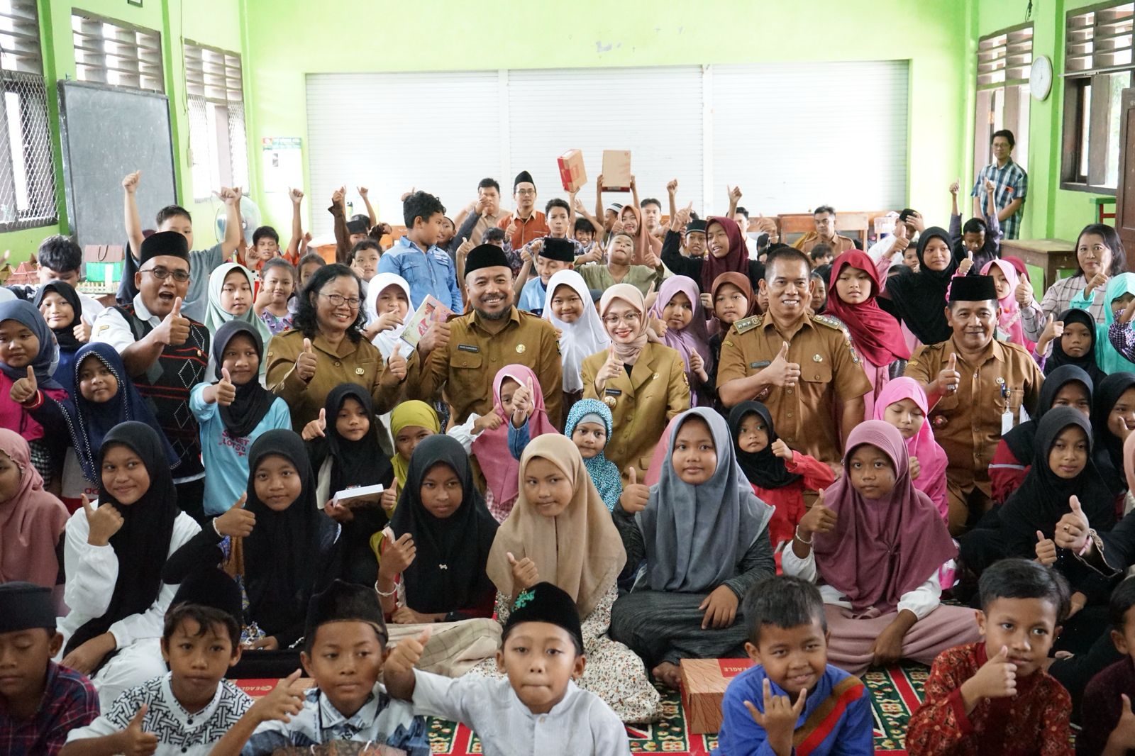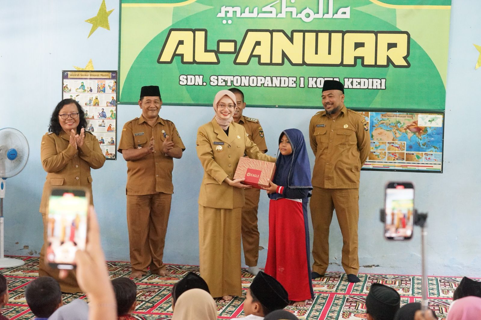Dalam kesempatan ini Mbak Vinanda juga memberikan motivasi kepada siswa-siswi SDN Setono Pande yang sedang menjalani Pondok Ramadan di Aula. Bahkan, Mbak Vinanda juga memberikan hadiah kepada anak-anak yang berani maju dan menjawab pertanyaan darinya.