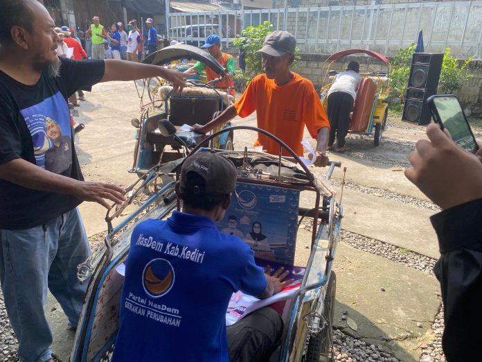 Panasin Mesin Partai, DPD Nasdem Kabupaten Kediri Branding Tukang Becak