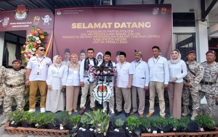 Kediri(adakitanews.com)—Partai Gerindra daftarkan 50 Calon Legislatif (caleg) ke Kantor KPU Kabupaten Kediri, Sabtu (13/5/2023) sore.