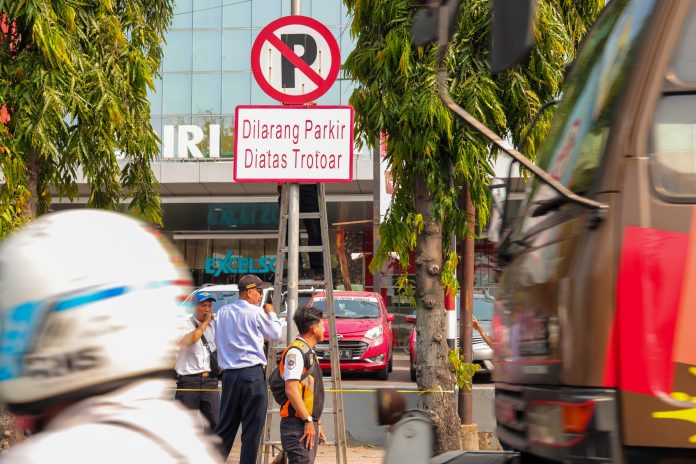Selesai apel, petugas tim gabungan menuju lokasi dan menyusuri kawasan Jalan Hasanudin yang telah terpasang rambu peringatan larangan parkir serta memasang dua delineator di atas trotoar. Pemasangan delineator ini bertujuan agar trotoar benar-benar bersih dari parkir liar sehingga tidak mengganggu kenyamanan para pejalan kaki.